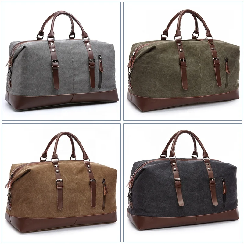 CHANGRONG Custom Vintage Durable Leather Canvas Men Weekender Bag
