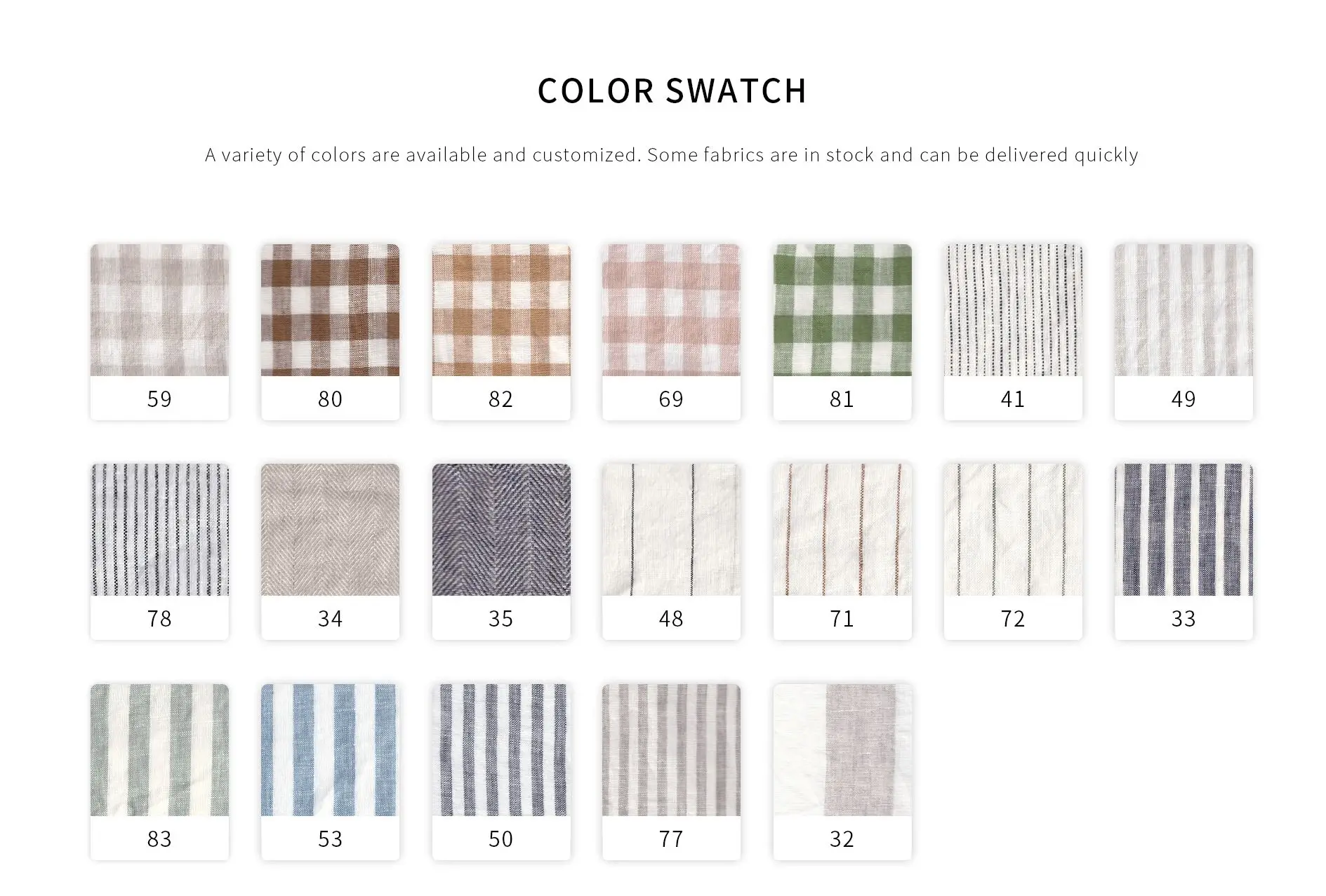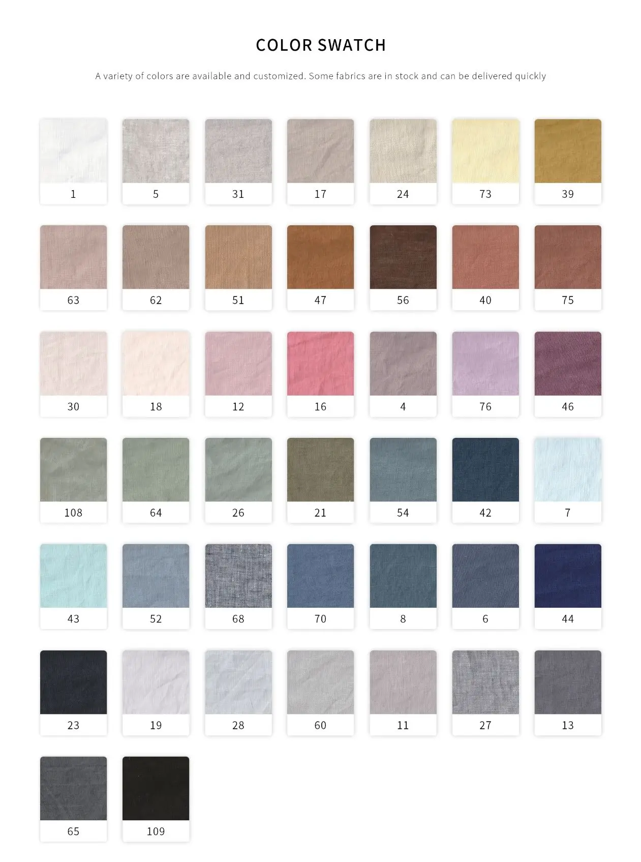 100% linen(Flax is imported from France or Belgium)